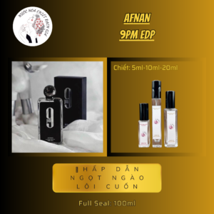Khi mùi hương thực sự được lột tả, Afnan 9PM thực sự gây ngạc nhiên vì độ tới không hề “lưng chừng”, mùi hương ban đầu dẫn vào trong, chắc nịch và ngọt lịm. Hương thơm sâu và đậm của hoa, vani và hoắc hương khiến nó trở nên ấm áp, ngọt ngào và quấn quýt. Hương thơm Afnan 9PM nam tính, lôi cuốn nhưng lại hết sức gần gũi. Giống như mùi hương của buổi tiệc, buổi trò chuyện hay buổi hẹn hò. 9 giờ tối là một mùi hương kín và rất thích hợp cho những dịp thư giãn cùng bạn bè.
